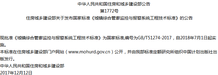 城镇综合管廊监控与报警系统工程技术标准收藏