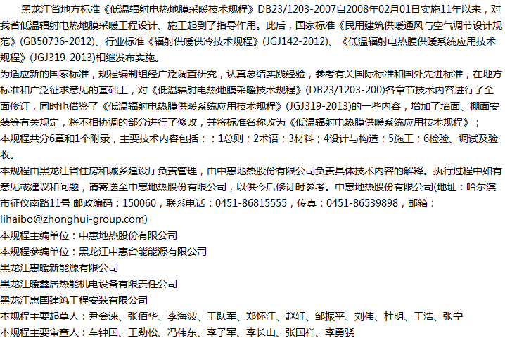 低温辐射电热膜供暖系统应用技术规程收藏