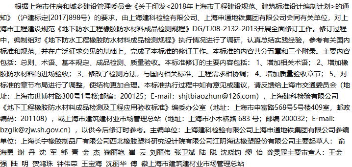 地下工程橡胶防水材料成品检测及工程应用验收标准收藏