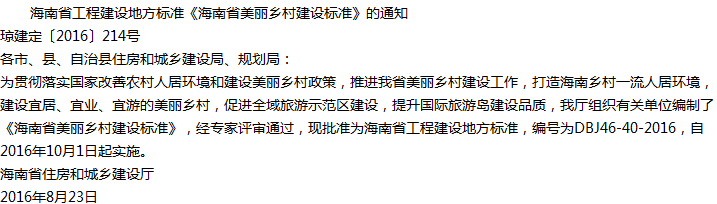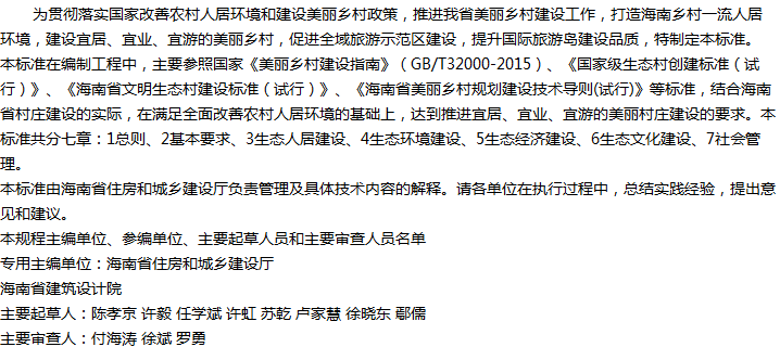 当前位置:首页 > 标准规范 > 海南省美丽乡村建设标准 <返回