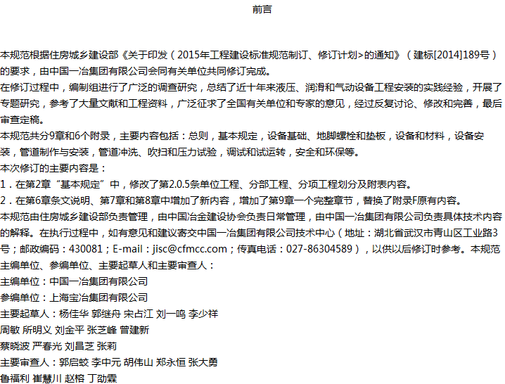 冶金机械液压、润滑和气动设备工程安装验收规范收藏