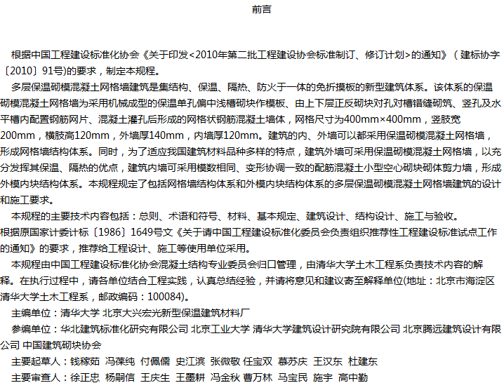 多层保温砌模混凝土网格墙建筑技术规程收藏