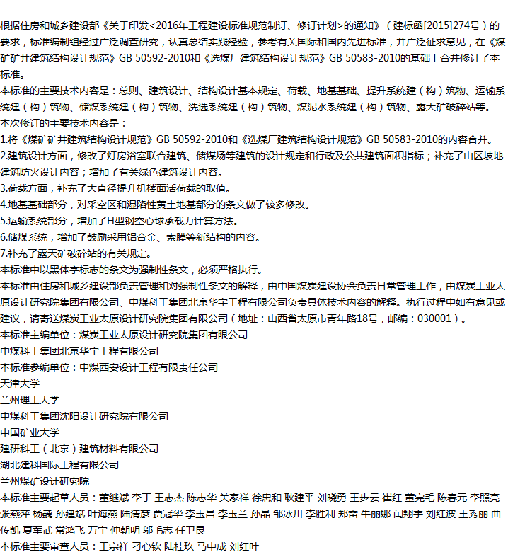 煤炭工业建筑结构设计标准收藏