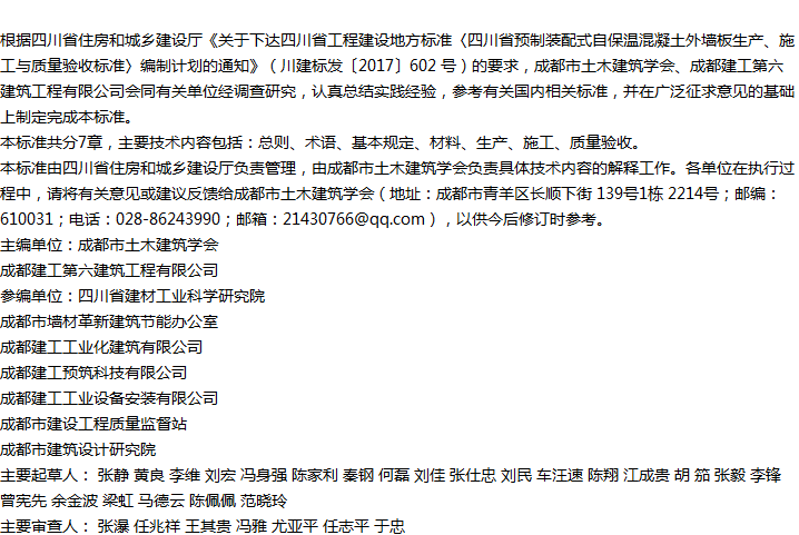 四川省预制装配式自保温混凝土外墙板生产、施工与质量验收标准收藏