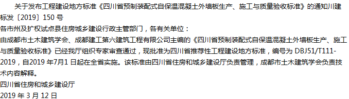 四川省预制装配式自保温混凝土外墙板生产、施工与质量验收标准