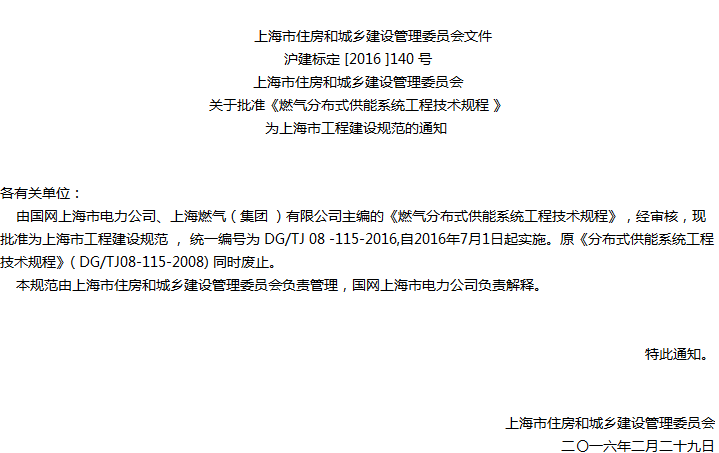 燃气分布式供能系统工程技术规程收藏