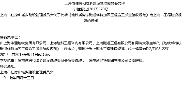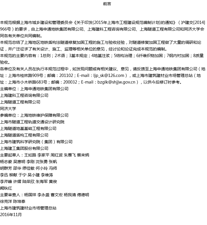 地铁盾构法隧道修复加固工程施工质量验收规范收藏