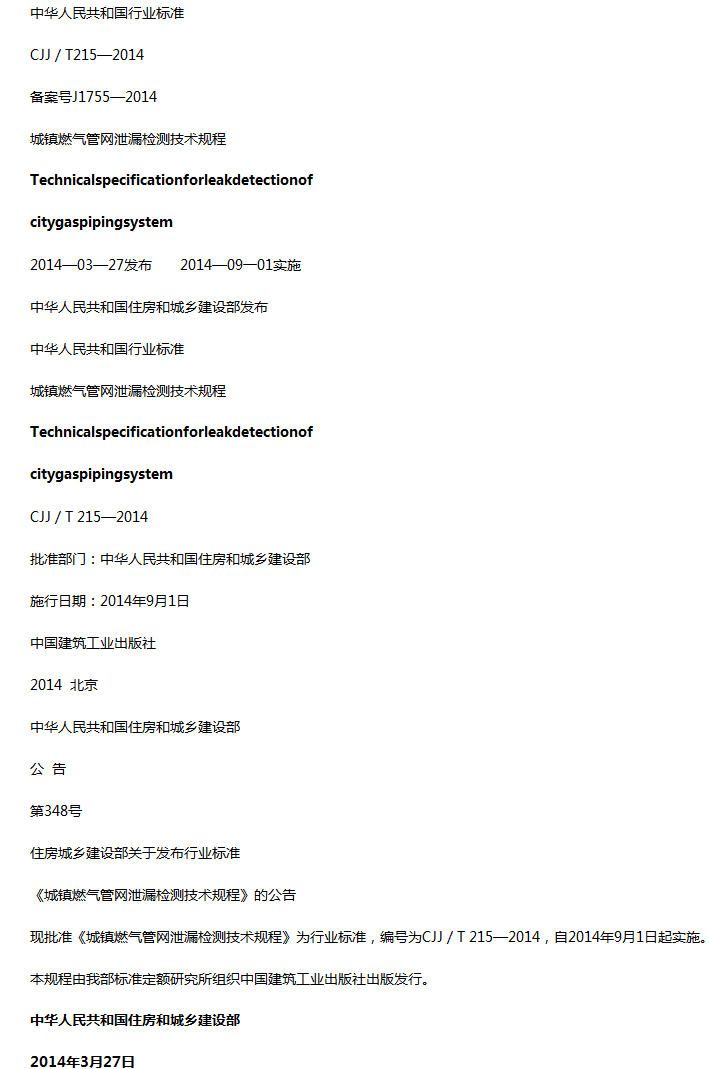 城镇燃气管网泄漏检测技术规程收藏
