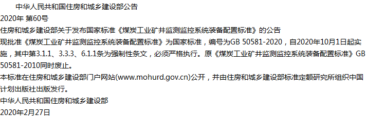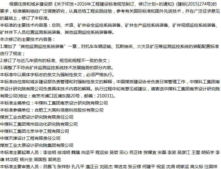 煤炭工业矿井监测监控系统装备配置标准收藏