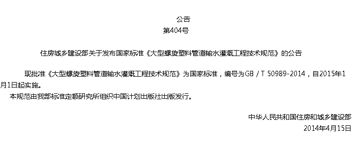 大型螺旋塑料管道输水灌溉工程技术规范收藏