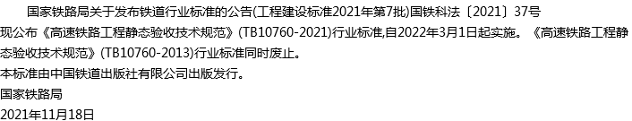 当前位置:首页 > 标准规范 > 高速铁路工程静态验收技术规范 <返回