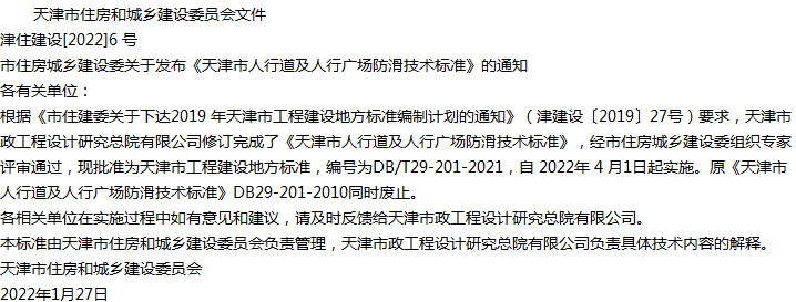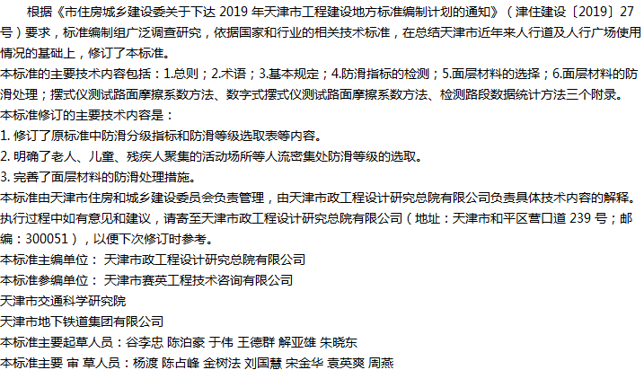天津市人行道及人行广场防滑技术标准收藏