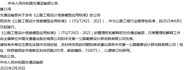 公路工程设计信息模型应用标准收藏