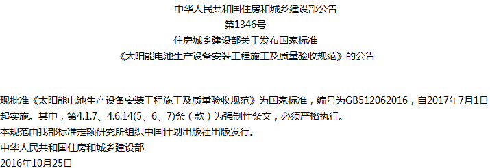 太阳能电池生产设备安装工程施工及质量验收规范收藏