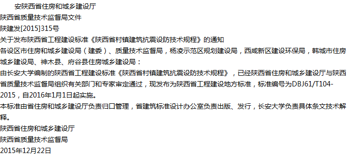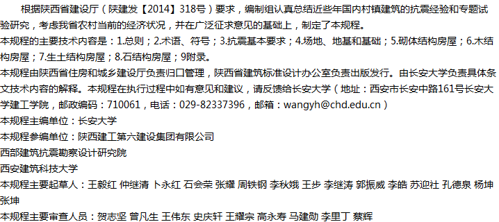 陕西省村镇建筑抗震设防技术规程收藏