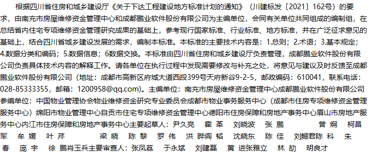 四川省住宅专项维修资金基础数据标准收藏