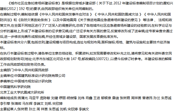 当前位置:首页 > 标准规范 > 城市社区应急避难场所建设标准 <返回