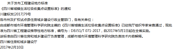 四川省城镇生活垃圾收集点设置标准收藏
