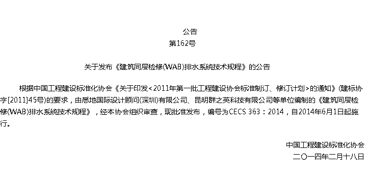 当前位置:首页 > 标准规范 > 建筑同层检修(WAB)排水系统技术规程 <返回