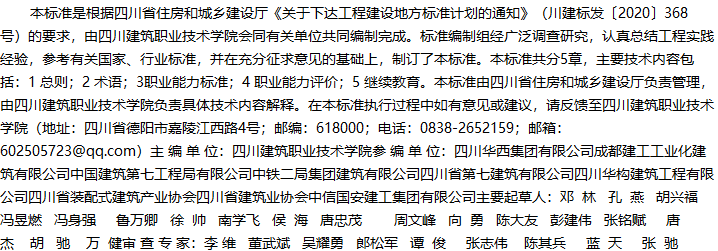 四川省住房和城乡建设领域从业人员职业标准土木建筑工程施工现场管理人员分册