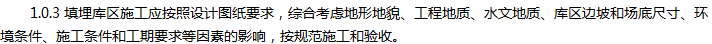 1.0.4 填埋库区施工和验收除应符合本规范外,尚应符合国家及地方现行有关标准的规定。