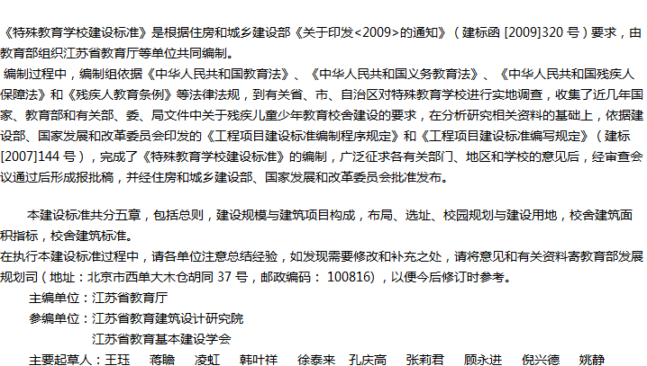当前位置:首页 > 标准规范 > 特殊教育学校建设标准 <返回