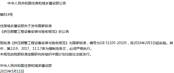挤压钢管工程设备安装与验收规范收藏