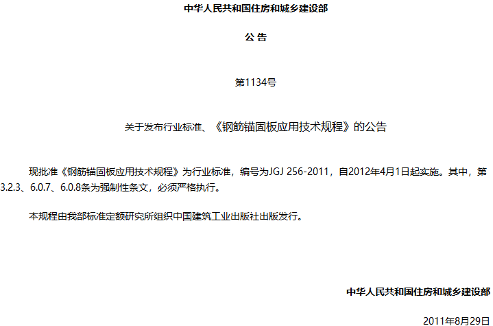 钢筋锚固板应用技术规程收藏