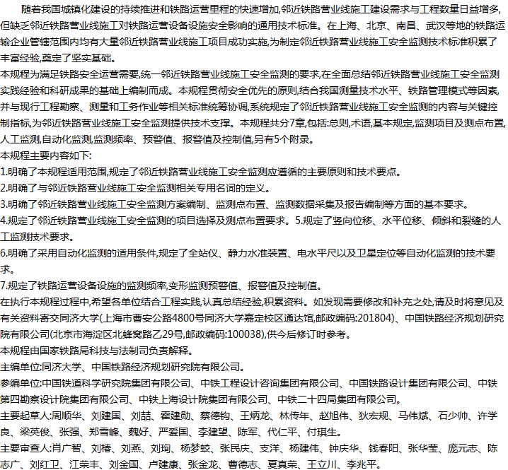 当前位置:首页 > 标准规范 > 邻近铁路营业线施工安全监测技术规程 <返回