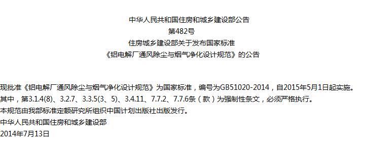 铝电解厂通风除尘与烟气净化设计规范收藏