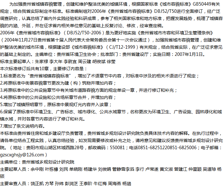 当前位置:首页 > 标准规范 > 贵州省城镇容貌标准 <返回