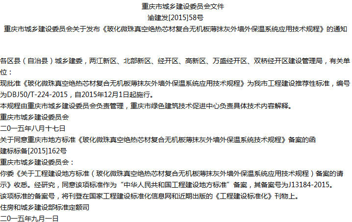 玻化微珠真空绝热芯材复合无机板薄抹灰外墙外保温系统应用技术规程收藏