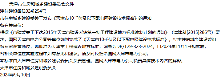 天津市10千伏及以下配电网建设技术标准收藏
