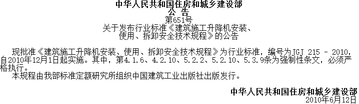 建筑施工升降机安装、使用、拆卸安全技术规程收藏