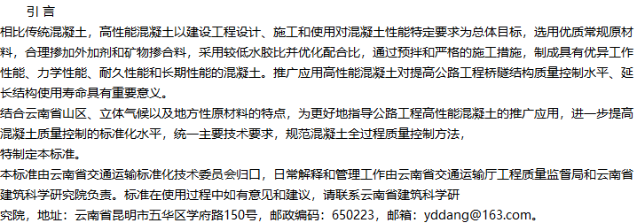 云南省公路工程高性能混凝土应用技术规程收藏