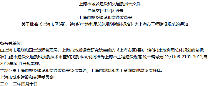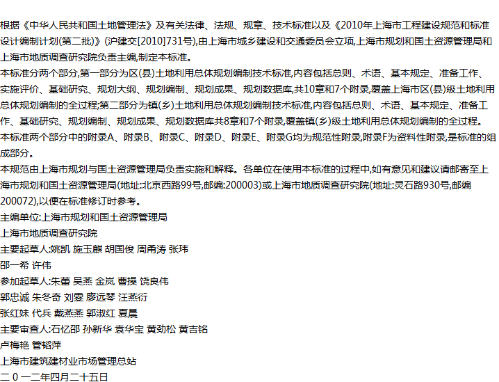上海市区(县)、镇(乡)土地利用总体规划编制标准第1部分:区(县)级收藏