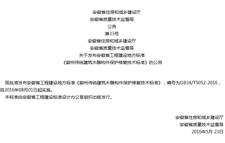 徽州传统建筑木雕构件保护修复技术标准收藏
