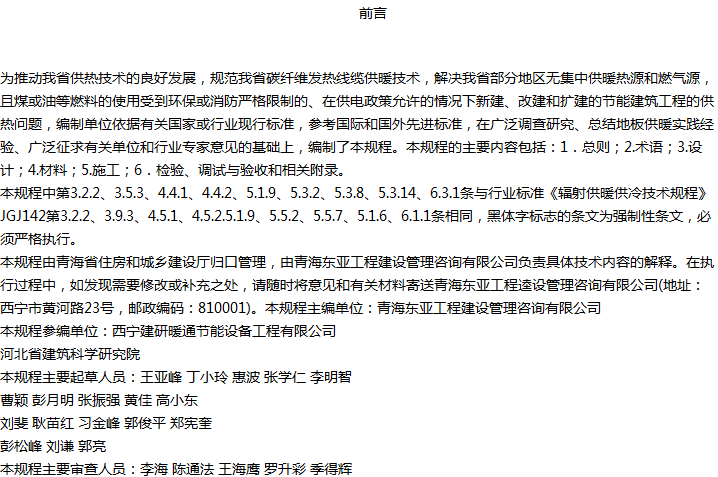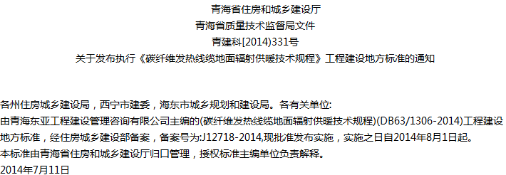碳纤维发热线缆地面辐射供暖技术规程收藏