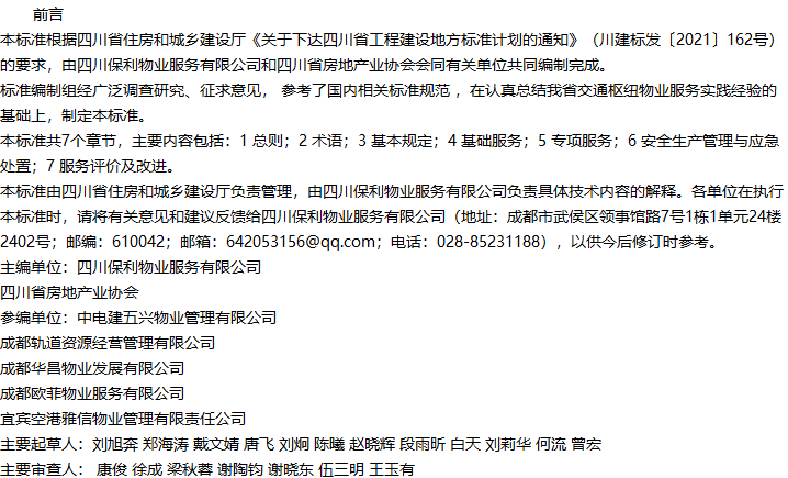 四川省物业服务标准第10分册: 交通枢纽物业服务标准