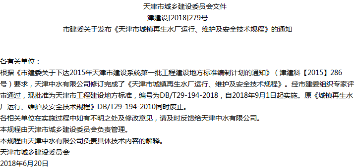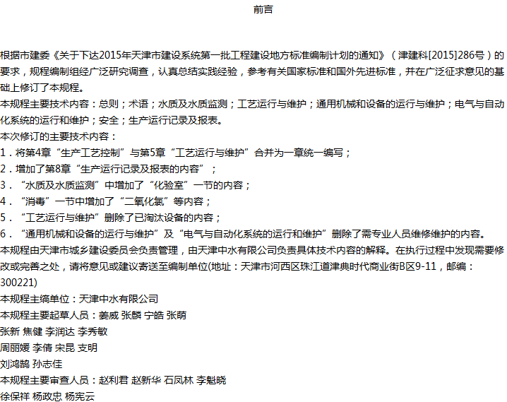 天津市城镇再生水厂运行、维护及安全技术规程收藏