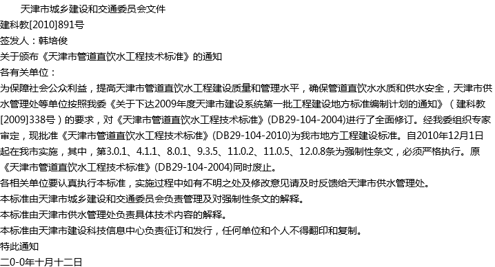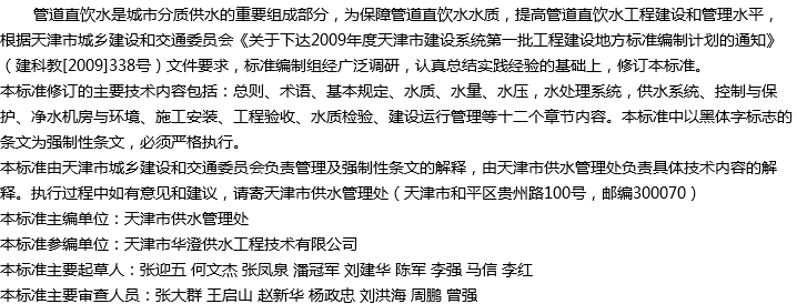 天津市管道直饮水工程技术标准收藏