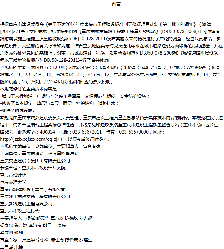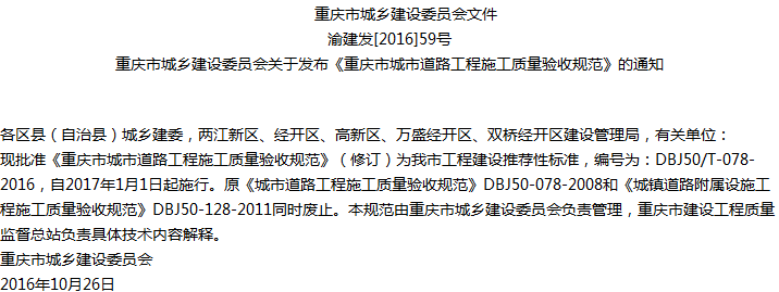 重庆市城市道路工程施工质量验收规范收藏