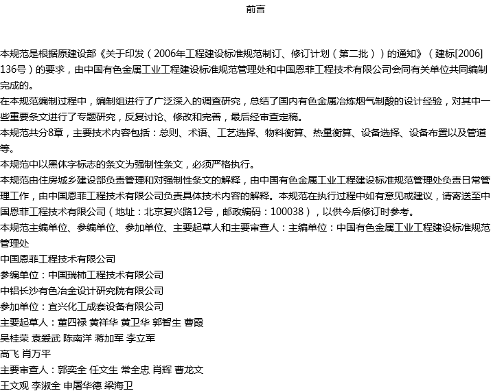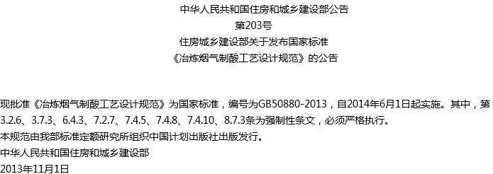 冶炼烟气制酸工艺设计规范收藏
