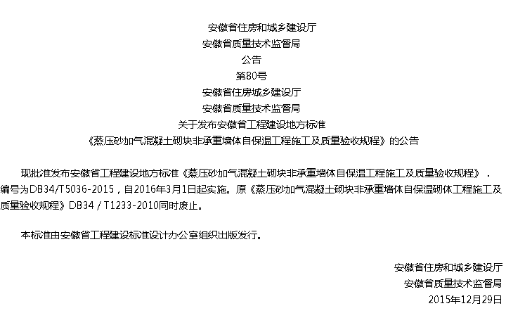 蒸压加气混凝土砌块非承重墙体自保温工程施工及质量验收规程收藏