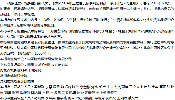 当前位置:首页 > 标准规范 > 乡镇集贸市场规划设计标准 <返回