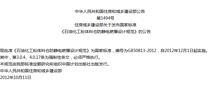石油化工粉体料仓防静电燃爆设计规范收藏