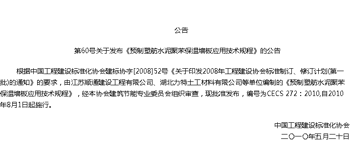 预制塑筋水泥聚苯保温墙板应用技术规程收藏