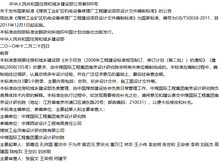 煤炭工业矿区机电设备修理厂工程建设项目设计文件编制标准收藏