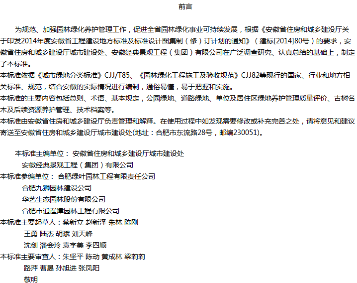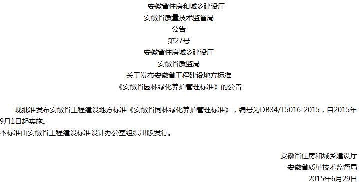安徽省园林绿化养护管理标准收藏