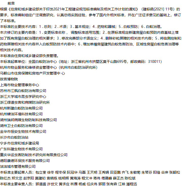 房屋白蚁防治技术标准收藏